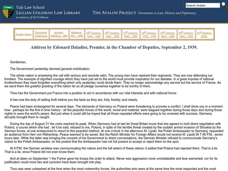 Yale: Avalon Project: Edouard Daladier, Premier, in the Chamber of Deputies