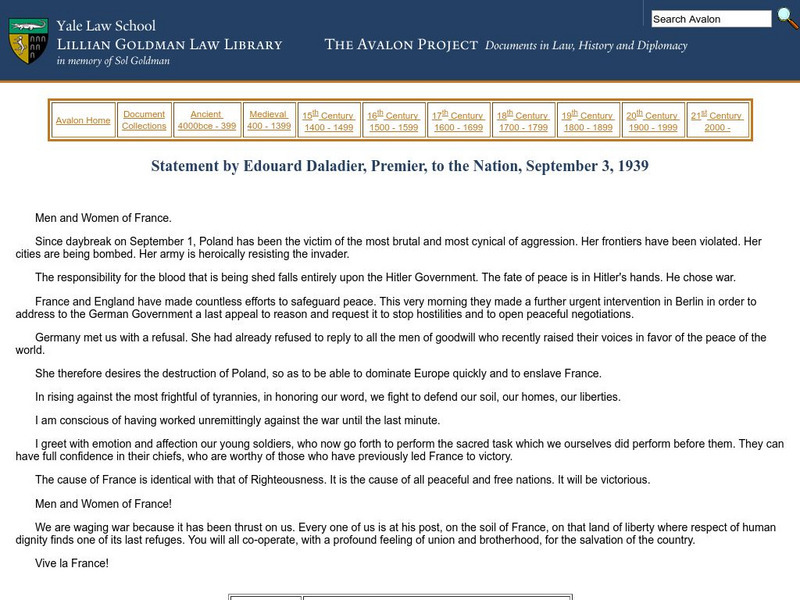 Yale: Avalon Project: Statement by Edouard Daladier, Premier, to the Nation