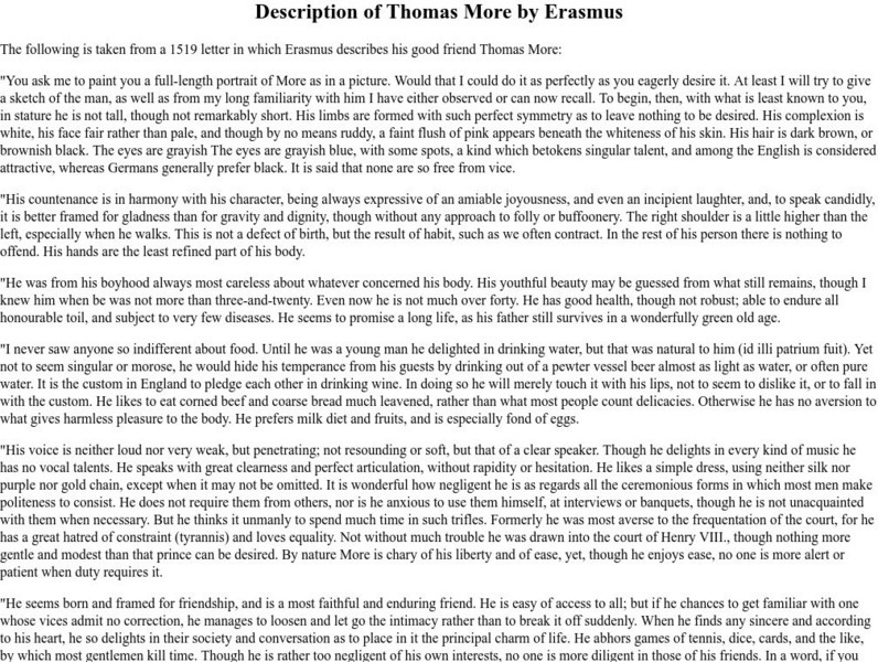 In this letter written in 1519, Desiderius Erasmus describes his friend Sir Thomas More.