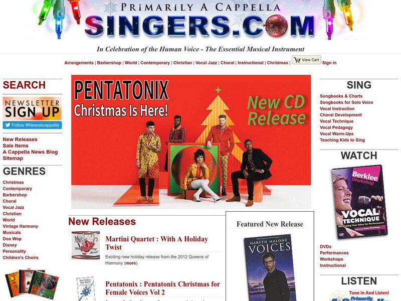A general website from Primarily A Cappella focusing on the world of a cappella singing. Find a recording. Look for an arrangement. Discover instructional materials such as books and videos. Find out what is happening in this fast...