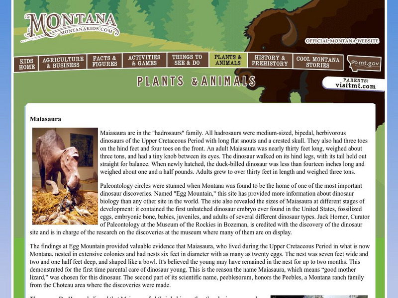 Read about paleontologist John Horner's 1978 discovery: a new dinosaur, the Maiasaura. Learn what this large creature's fossil tells us about the Maiasaura's diet and physical features. Click on "See the skeleton" for an interactive tour...
