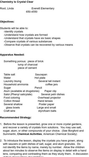 From the Science and Mathematics Initiative for Learning Enhancement (SMILE) program. A lesson plan in which students explore the properties of crystals. Includes a variety off hands-on activities. Great for stimulating an idea for a...