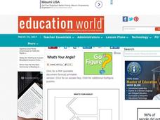 In this angle worksheet, students identify five shapes and then place them together to form a square. Afterward, they answer three questions regarding the number of right, acute and obtuse angles. This one-page worksheet contains a total...