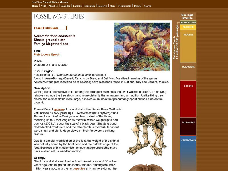 San Diego Natural History Musem: Fossil Field Guide: Giant Ground Sloth