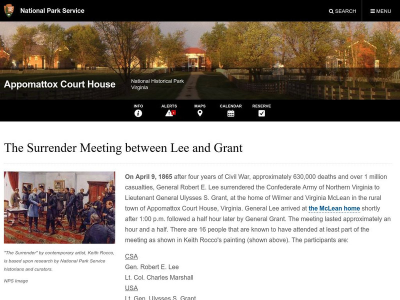 Part of the website of Appomattox Court House National Historical Park, this site details the surrender of Confederate forces at Appomattox in the Civil War. Includes The Gentleman's Agreement, terms of the surrender, and officers...