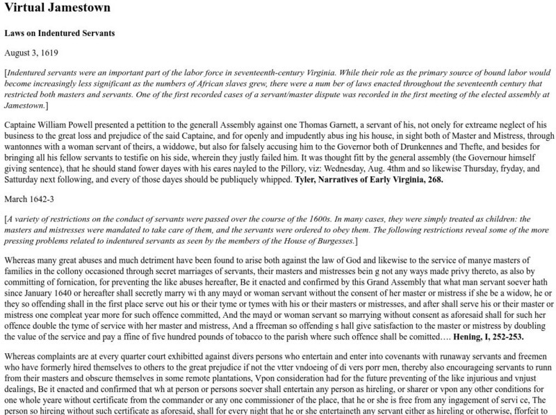 National Park Service: Hampton Historical Site: Lives of Indentured Servants