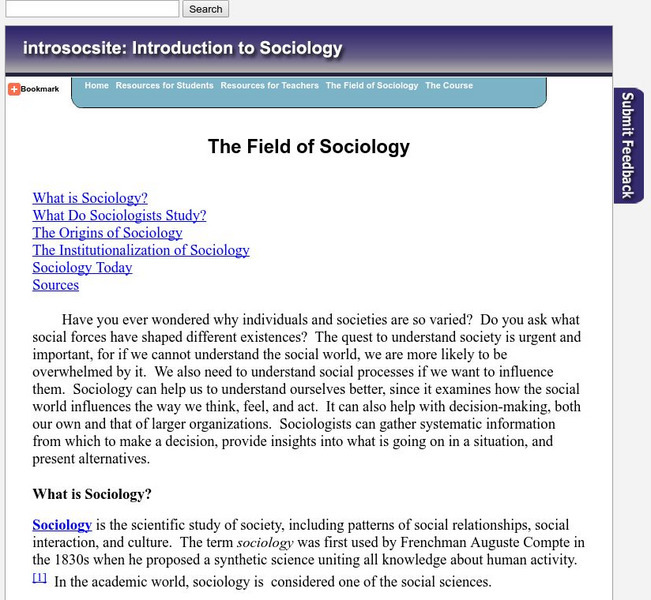 A very detailed look at the development of the field of sociology. Looks at its historical roots, the earliest sociologists, and explains major theories that it was based on, and theories and schools of thought that evolved from those....