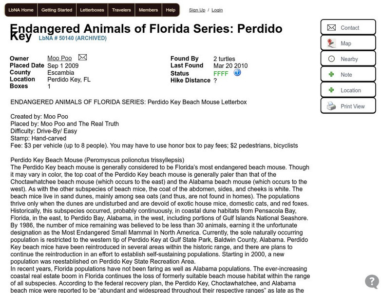 Letterboxing North America: Endangered Animals Florida: Perdido Key Beach Mouse