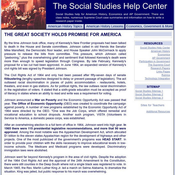 Read about President Lyndon Johnson's vision for the Great Society. See how the programs instituted were focused on lifting the poor from poverty, especially African Americans. Included were laws to increase civil rights and voting...