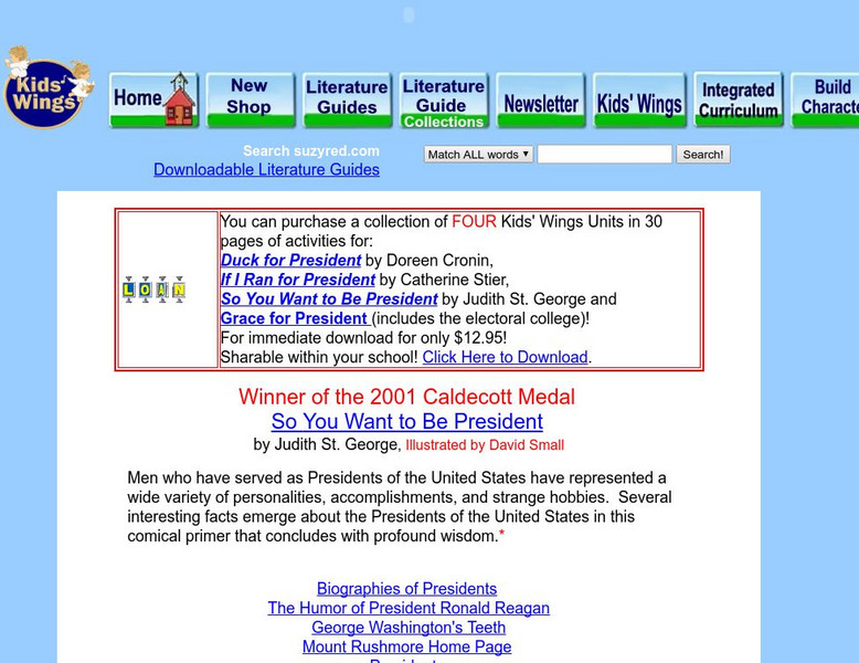 Come and check out this educational resource featuring the book "So You Want to be President" by Judith St. George. This site provides a brief description of the book, a teaching plan and a booklist of the author's other works.