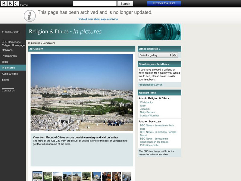 A series of photos of various sites of religious importance in the city. It contains a full view of the city as seen from Mount Olive.