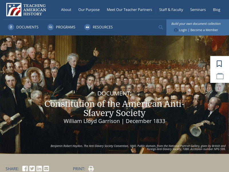 [Free Registration/Login Required] Tour the online original documents that tell a story about the abolition of slavery in both the United States and England. Click on the tiny "next" above the text to go through the interactive.