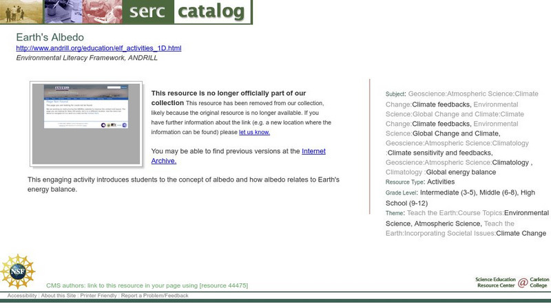 This engaging activity introduces students to the concept of albedo and how it relates to Earth's energy balance. They measure the albedo using maps, data tables, and a shaker filled with popcorn kernels. Then, they estimate the Earth's...