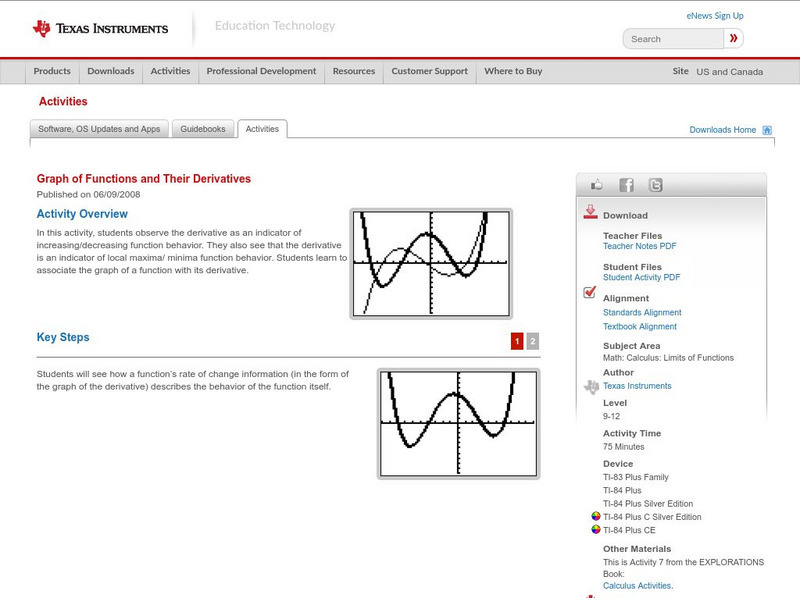In this activity, students observe the derivative as an indicator of increasing/decreasing function behavior. They also see that the derivative is an indicator of local maxima/ minima function behavior. Students learn to associate the...