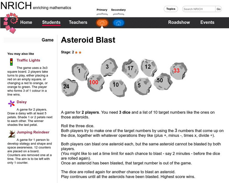 University of Cambridge: Nrich: Game Asteroid Blast