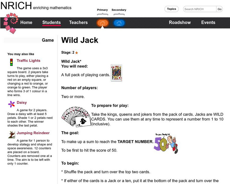 University of Cambridge: Nrich: Game Wild Jack