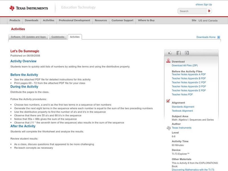 Students learn to quickly add lists of numbers by adding like terms and using the distributive property.