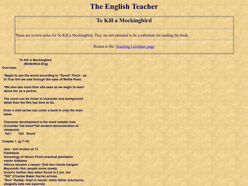 Teacher2b.com: Notes for "To Kill a Mockingbird"