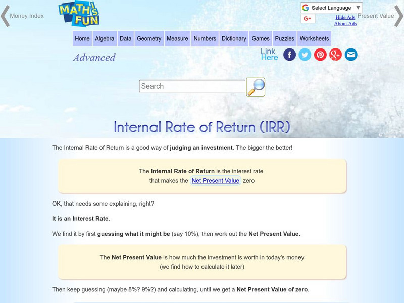 Explains, with examples, what an internal rate of return is, its uses, and how to calculate it using the net present value.
