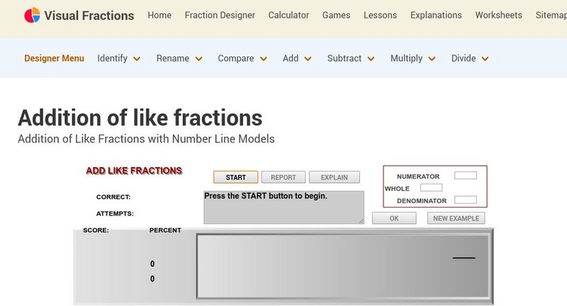 Test your aptitude at adding fractions on a number line. Enhance your skills using this interactive math game. Immediate feedback and examples provided.