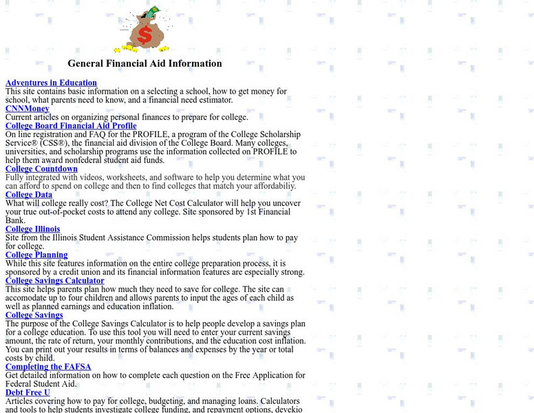 Are you looking for information about financial aid? This college/career guidance page has an extensive listing of online financial aid resources.