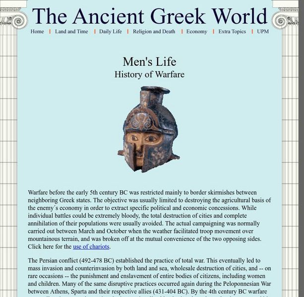 This resource summarizes the history and nature of ancient Greek warfare and the role it played in the average man's life. It includes further links about chariots, weapons, and armor.