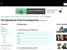 For this online interactive reading comprehension worksheet, learners respond to 25 multiple choice questions about Anne Brashares's Sisterhood of the Traveling Pants. Students may submit their answers to be scored.