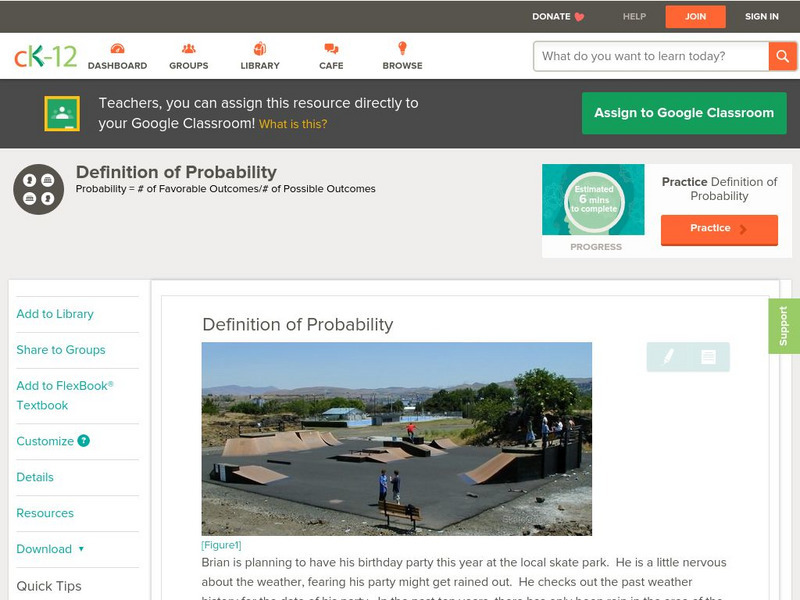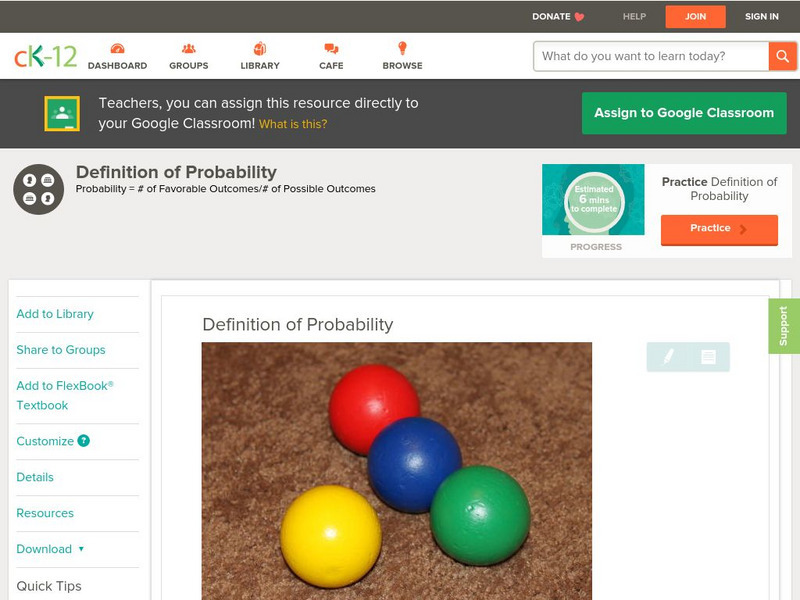 Ck 12: Probability: Definition of Probability