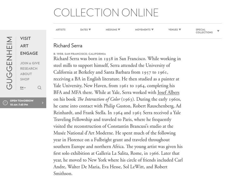 Guggenheim Museum: Collection Online: Artist Bio: Richard Serra