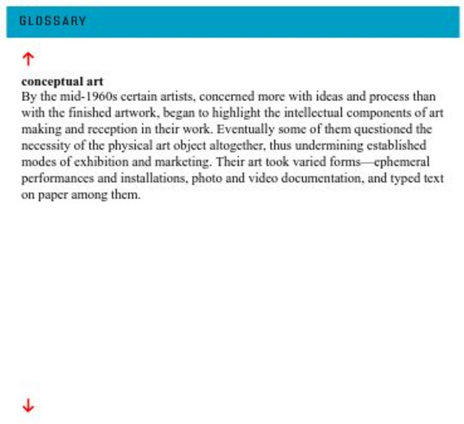 Glossary entry defines what is meant by the term conceptual art.