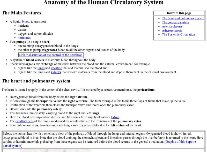 This site is produced by John W. Kimball, a retired biology teacher who wrote the textbook that these pages came from. The excerpt explains the different parts of the circulation system and how they function. Includes great pictures!