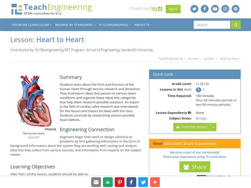 Young scholars learn about the form and function of the human heart through lecture, research and dissection. They brainstorm ideas that pertain to various heart conditions and organize these ideas into categories that help them research...