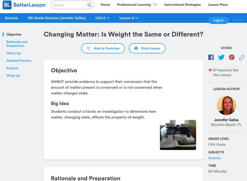 Better Lesson: Changing Matter:changing Matter: Is Weight the Same or Different?
