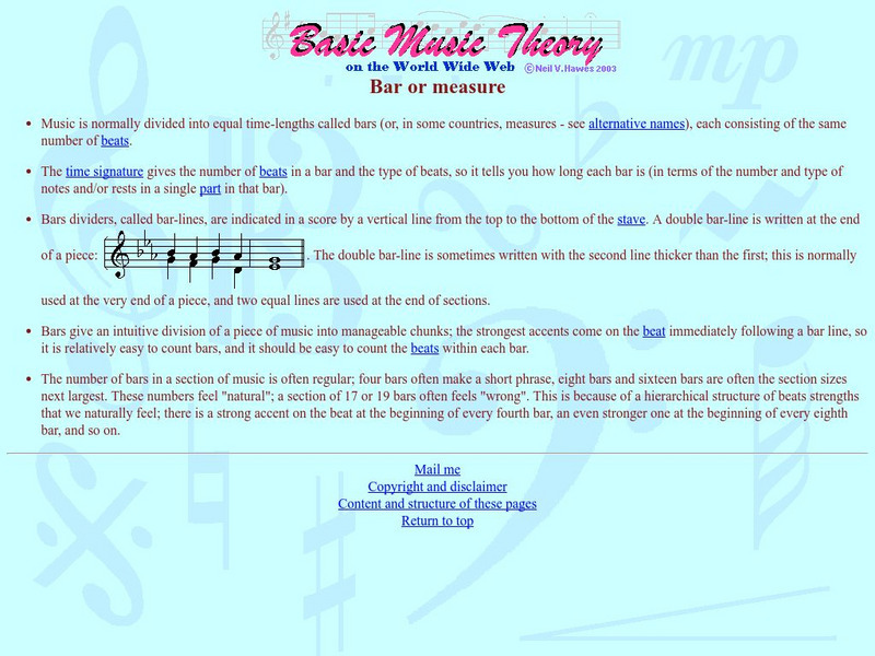 Music thoery.net: Measures and Time Signatures