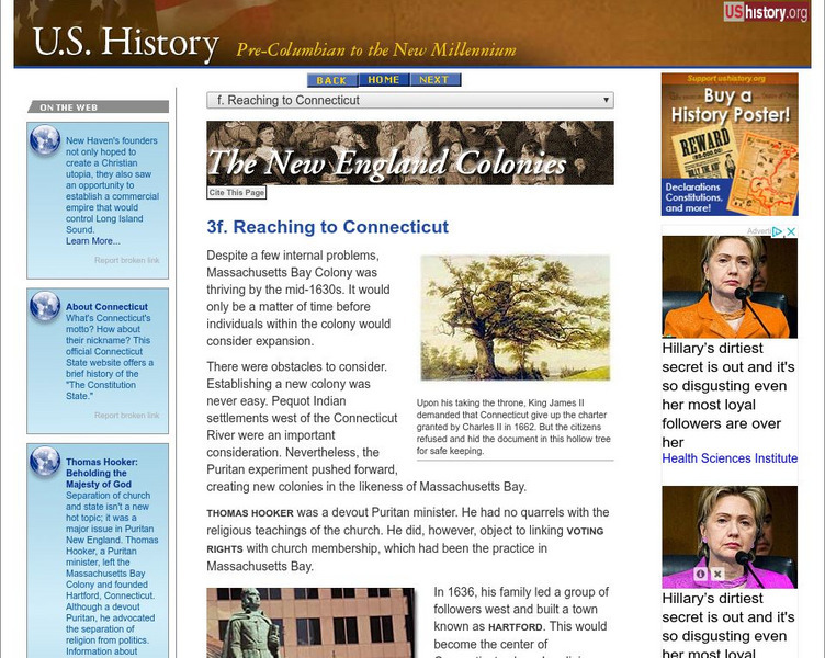 Read about how the colony of Connecticut grew from an expansion of the Massachusetts Bay Colony. See how Thomas Hooker's idea of government resulted in a model of colonial charters, and find out how two very different settlements in...