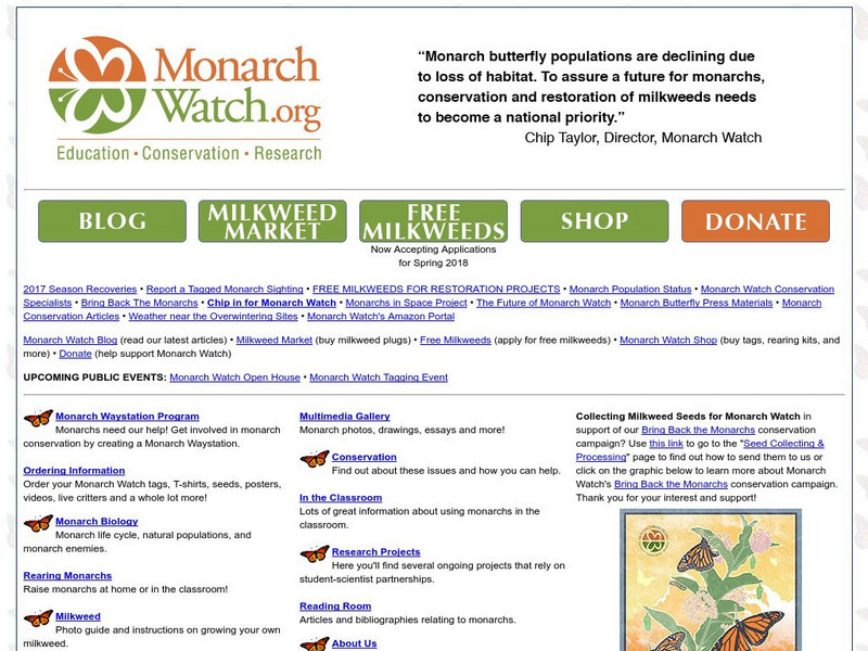 This is an excellent resource for information about the monarch butterfly that includes information about life cycle, migration, observation, conservation, classroom activities, butterfly gardening, butterfly rearing, and the like.