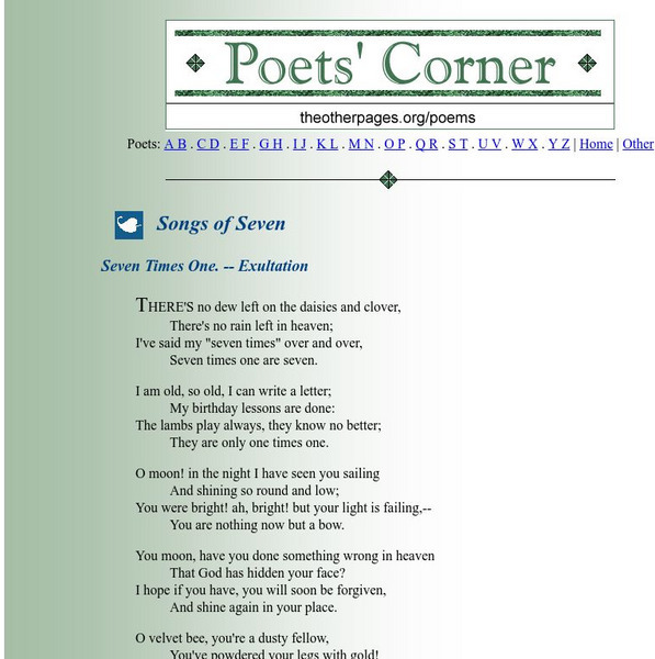 Read Jean Ingelow's collection of poems entitled "Songs of Seven" that had a significant impact on England's 19th century culture.