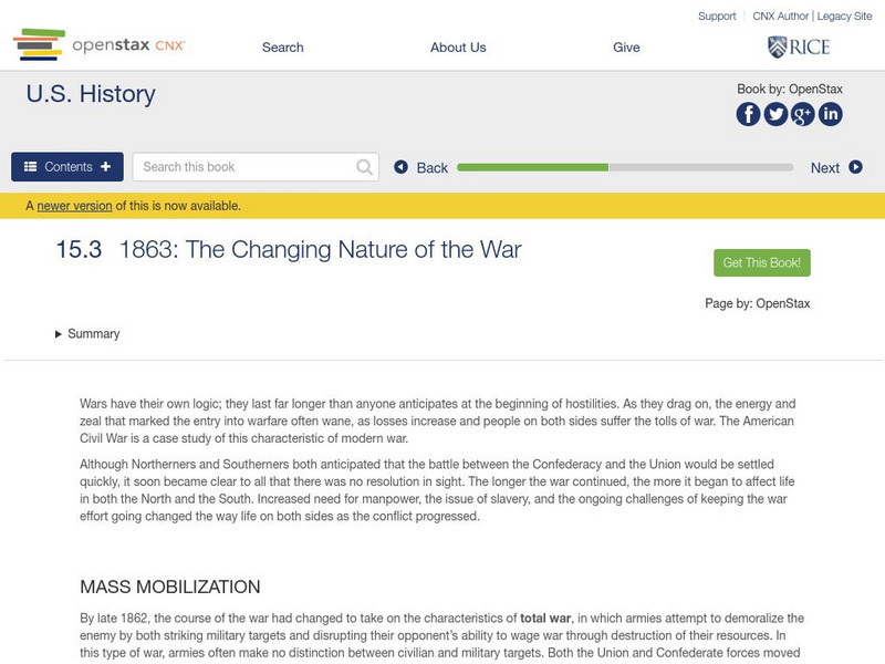 Students will learn about the term "total war" and be able to provide examples. They will also be able to describe mobilization efforts in the North and the South and explain why 1863 was a pivotal year in the war.