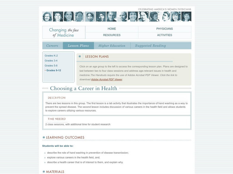 There are two lessons in this lesson plan site. The first gives the students an appreciation of the need for hand washing to prevent disease and the second allows the students to explore the health field and to describe a career that...