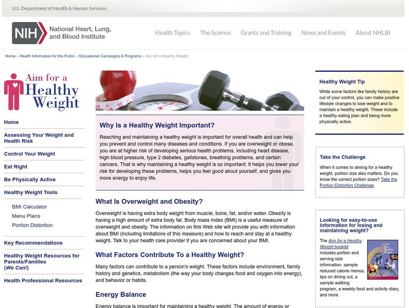 This page links you to recommendations, risk assessments, and suggestions for controlling weight. Most useful is the link to publications for more in-depth info.