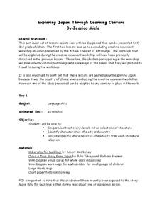 Students explore the Japanese culture and literature through various learning centers. They compare and contrast story details in two stories and complete a Venn diagram. After comparing the stories, they rotate to different centers and...