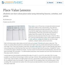 Here is a phenomenal lesson on place value to the thousands place. Learners construct numbers and identify the value of each digit, investigate building numbers using craft sticks and paper plates, and complete other meaningful...