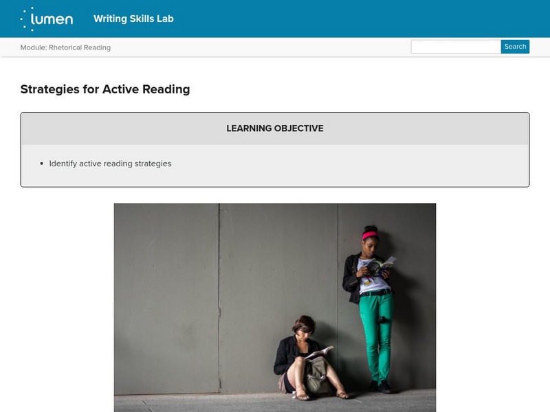 Lumen: Rhetorical Reading: Strategies for Active Reading