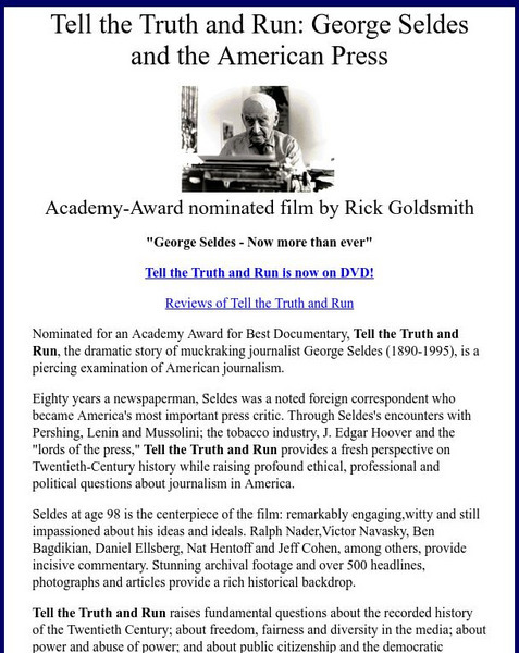 Read about George Seldes (1890-1995), a muckraker and press critic. Read some of his writings from his column "In Fact." Read his autobiography and a brief biography. There are links to other sites about George Seldes. Site by Brass Check.