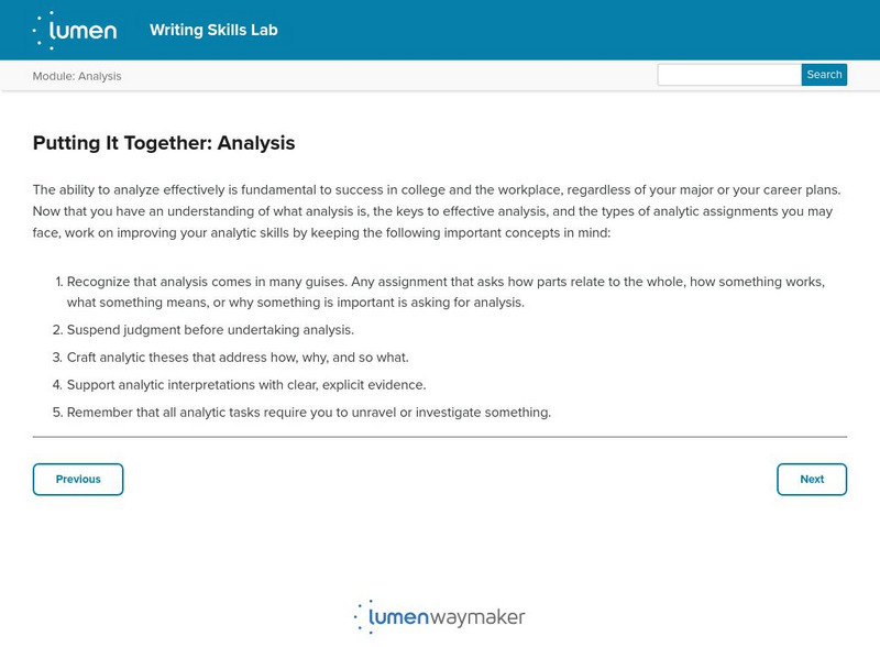 This introduction to reading and analyzing text features a list of learning objectives for analyzing prose and poetry, and an understanding of critical approaches to literary interpretation.
