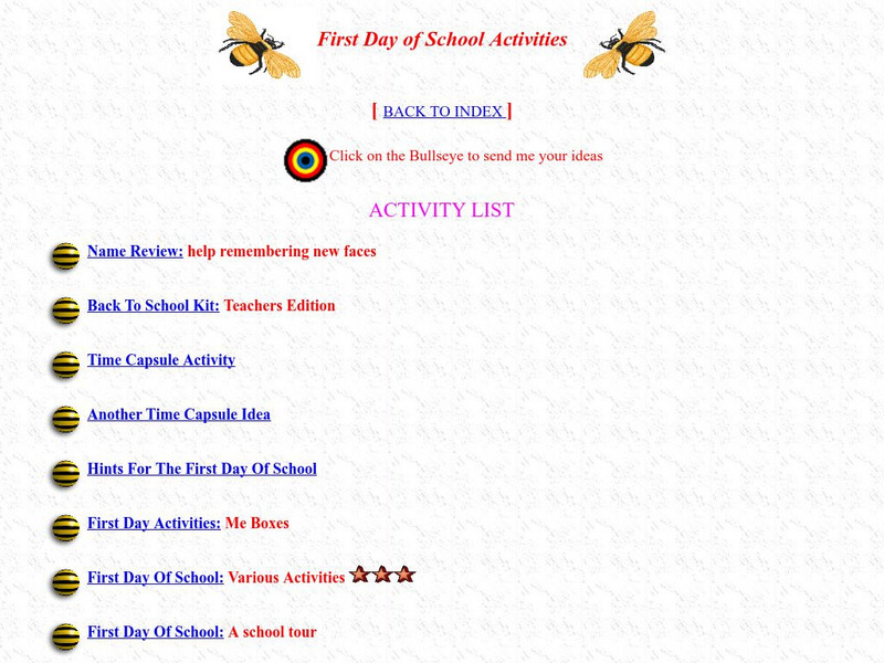 Prepare for your students first day of school with these inviting activities. This site features several great ideas for teachers to incorporate in their beginning of school lessons.