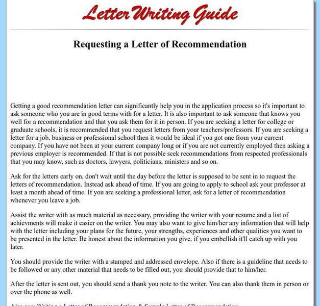 This student and teacher-friendly site contains provides the etiquette associated with obtaining a letter of recommendation. In addition, the article discusses the elements of a good letter of recommendation.