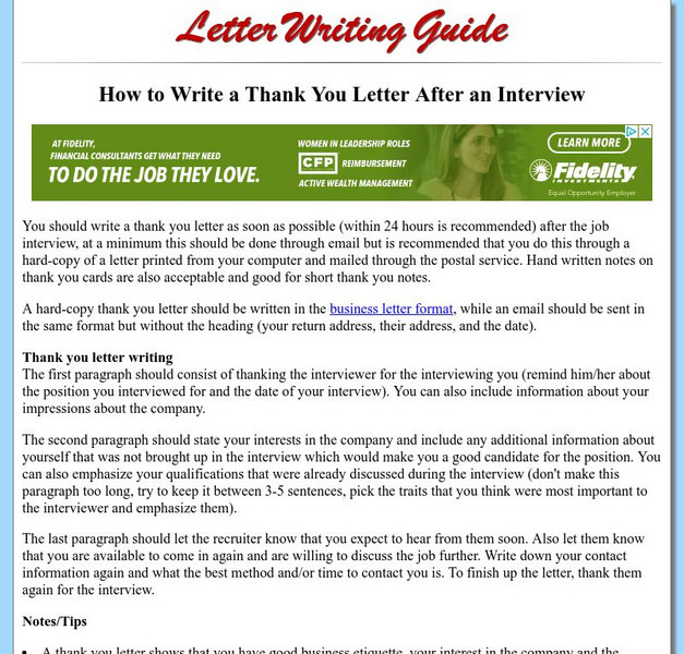 This student and teacher-friendly site contains the rationales for writing thank-you letters after job interviews. In addition, the article discusses the elements to include in a thank-you letter.