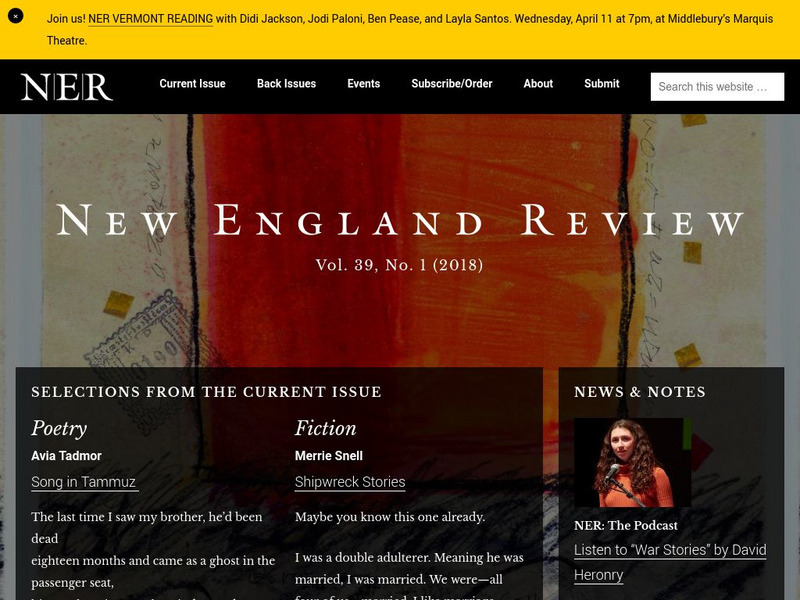 The New England Review is a quarterly journal that publishes short fiction, a variety of general and literary nonfiction, and poetry.