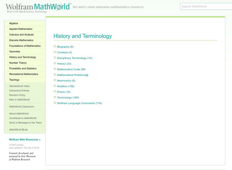 Wolfram Math World: History and Terminology Topics